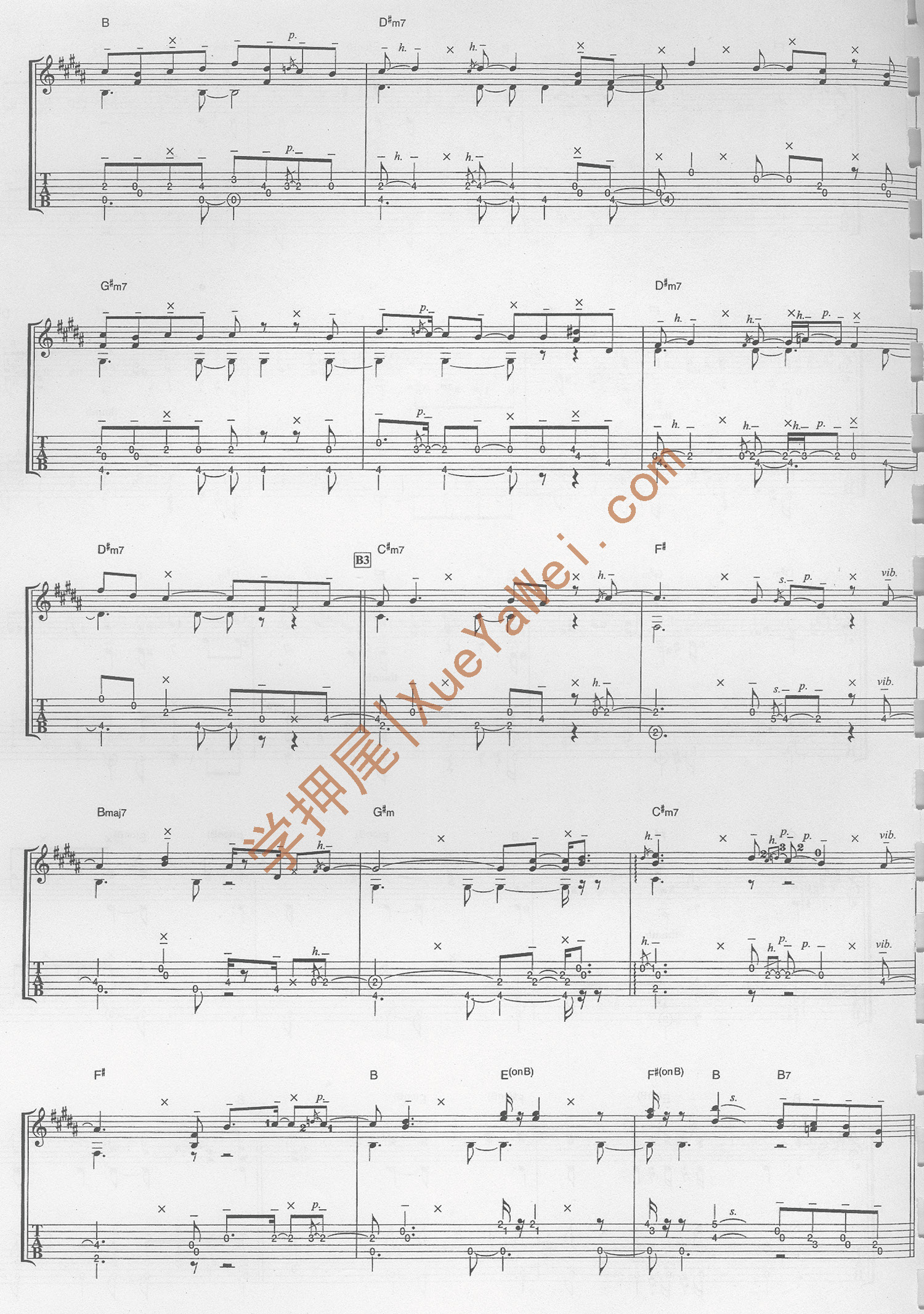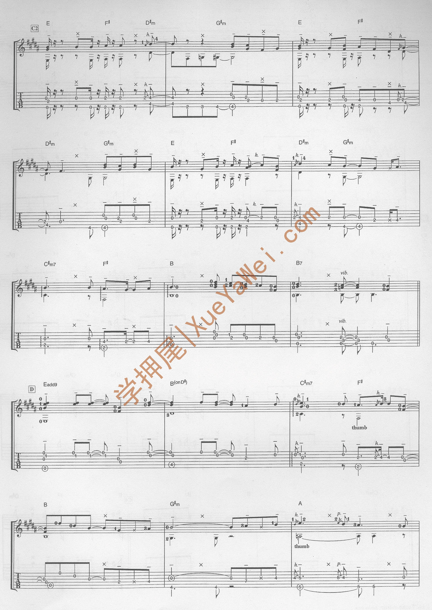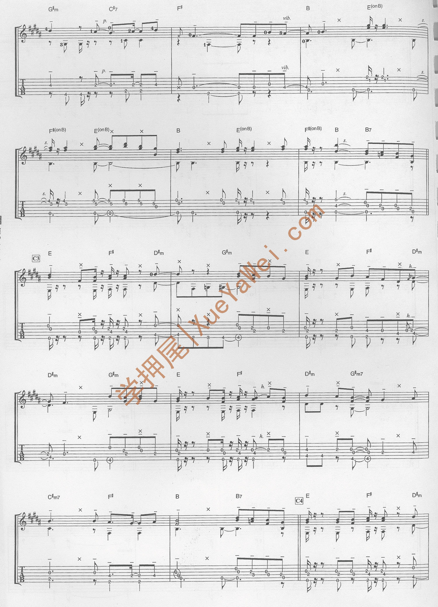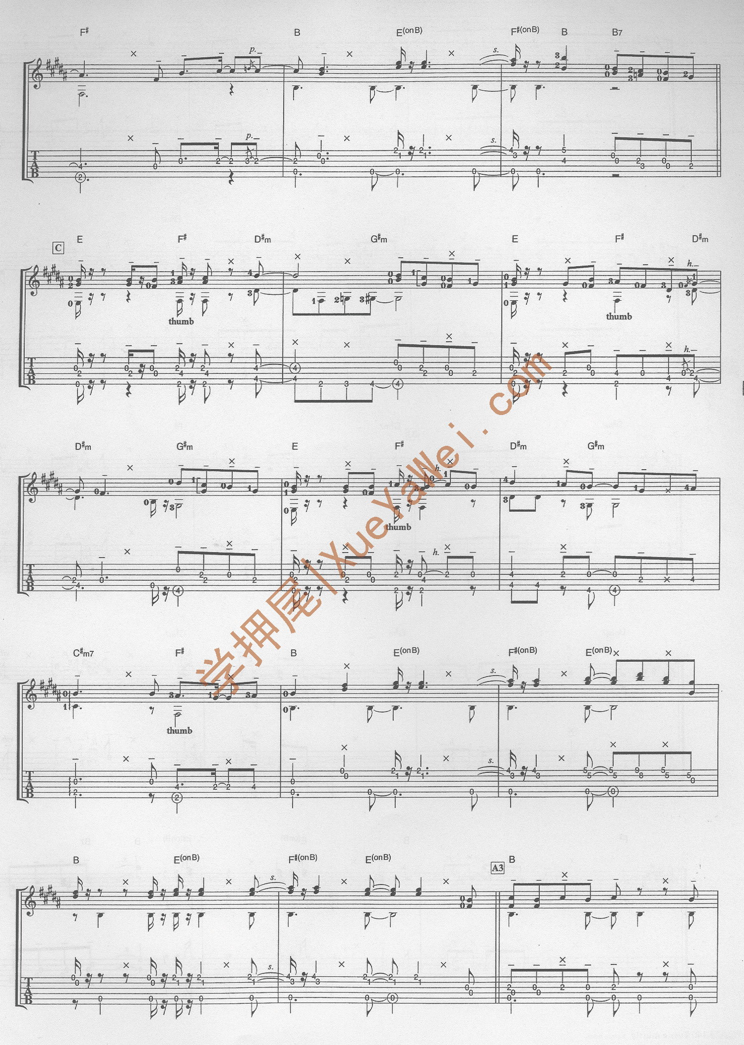 注:此曲调弦方式及变调夹把位与Time after Time相同,两首曲子可以一同练习。